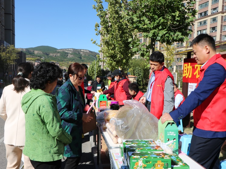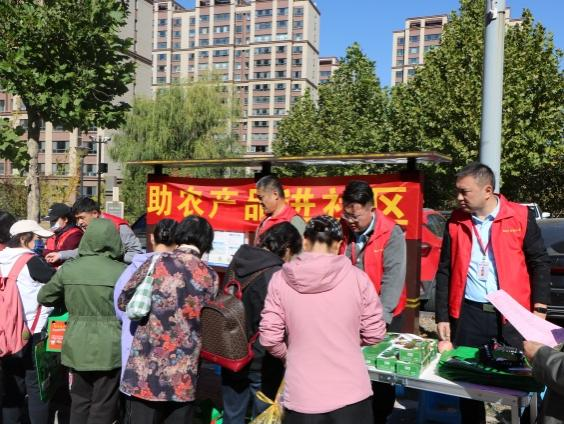 10月20日一早,由“第一書記”帶隊,大家為社區居民帶來了優質農產品。活動現場擺滿了青石山小米、農家泉水小花椒、手工地瓜粉皮、農家散養山雞蛋、手工煎餅、無添加玫瑰花茶等農產品,受到了居民的歡迎。
