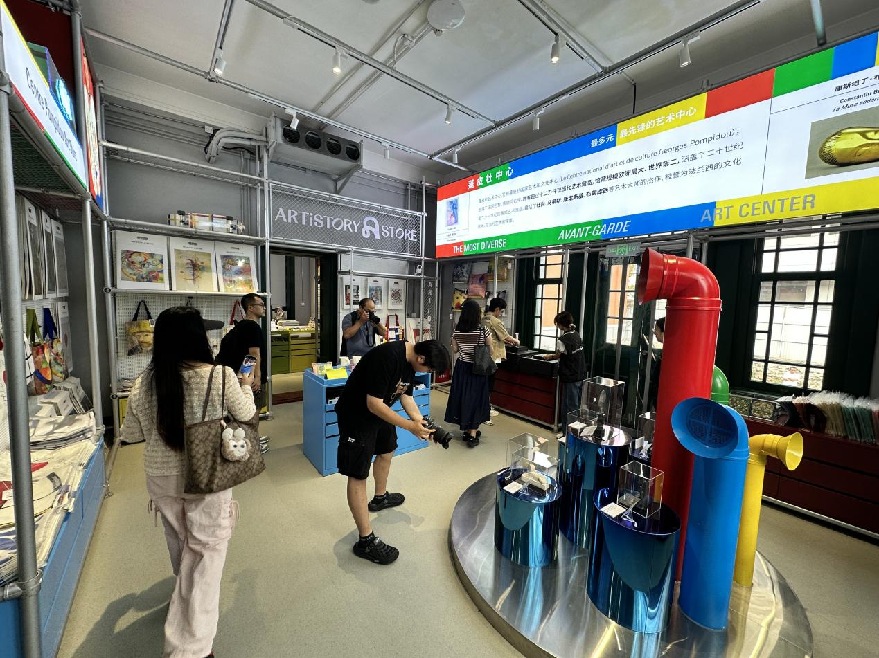 在項(xiàng)目負(fù)責(zé)人的講解帶領(lǐng)下,媒體記者參觀了文創(chuàng)旗艦店、IP主題餐飲、美育工坊、六大主題展等內(nèi)容。主題零售區(qū)域以蓬皮杜中心的鋼架矩陣與管道結(jié)構(gòu)為設(shè)計(jì)靈感,提供獨(dú)家藝術(shù)衍生品,讓觀眾帶走可收藏的城市記憶;藝術(shù)展陳裝置以館藏杰作為靈感,設(shè)置互動(dòng)體驗(yàn)區(qū),引領(lǐng)觀眾走進(jìn)大師構(gòu)建的藝術(shù)時(shí)空;閱讀與藝術(shù)活動(dòng)共創(chuàng)區(qū),實(shí)現(xiàn)“可逛、可玩、可學(xué)、可買”的多元體驗(yàn)。首展《天才的『綺』跡:從野獸派到包豪斯的色彩盛宴》所展示的“法國(guó)博物館聯(lián)盟”所藏真跡藝術(shù)品引起了記者們的特別關(guān)注,讓觀者感受百年商埠更新勢(shì)能與全球頂級(jí)藝術(shù)IP的巧妙對(duì)話,見(jiàn)證工業(yè)美學(xué)與意大利文藝復(fù)興風(fēng)格建筑交融共生的藝術(shù)盛宴。