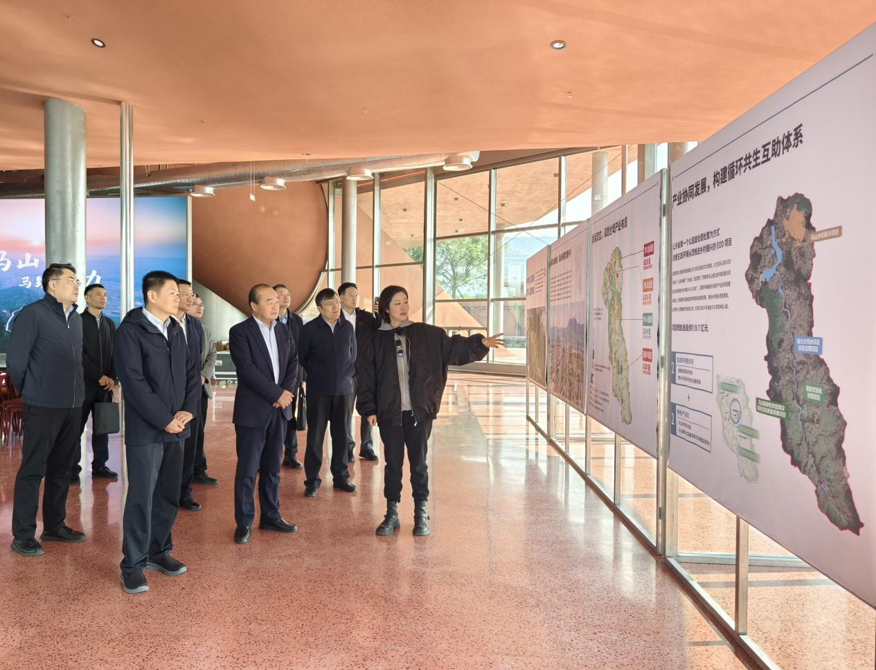 調研組一行首先在項目農庫區域觀看大屏宣傳片與項目模型,詳細聽取項目負責人關于馬山鄉村振興項目整體規劃、產業布局及當前建設進展的匯報。隨后,調研組實地察看了鯉村、松頌花園農場等項目,系統了解各類特色項目在鄉村產業、生態、文化振興等方面的創新舉措。