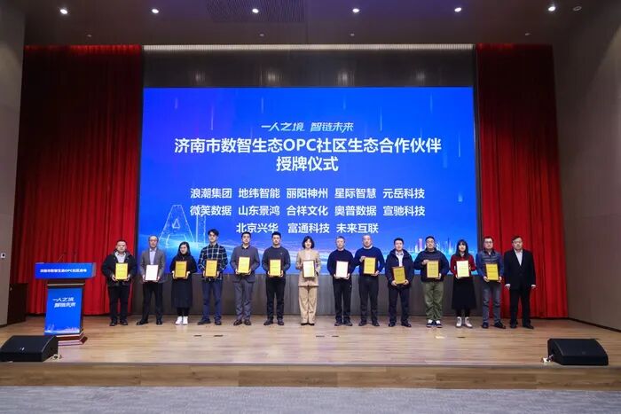 據了解,社區創新性地采用了“1個核心生態體系+N個分布式節點”的物理架構,濟南城投大廈、濟南科金大廈、齊魯軟件園、濟南人工智能島等12個城市產業載體被授予“濟南市數據要素賦能AIOPC創新示范社區”牌匾,成為社區首批物理節點。這一布局意味著“一人公司”并非孤立據點,而是深度嵌入濟南全域各產業網絡,有效促進了微觀創新主體與區域產業集群的融合與協同。
