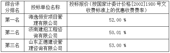 濟南市太平水庫工程招標代理機構服務項目競爭性磋商評標結果公示