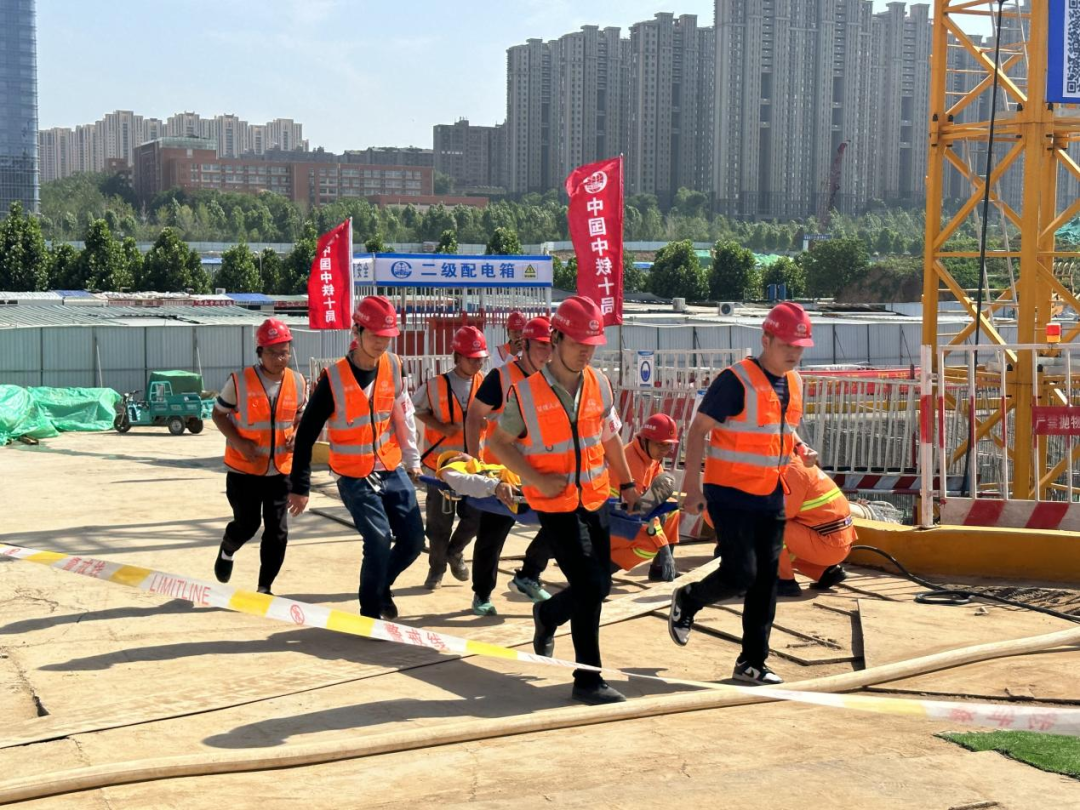 “安全生產月”啟動儀式后,銜接組織了防洪防汛應急演練。在總指揮宣布演練正式開始后,應急搶險隊伍現場模擬了暴雨來襲,基坑應急排水及受困人員搶救等科目演練。各救援小組按照應急預案職責分工,各司其職、緊密配合,立即進行了現場警戒、技術支持、資源保障、堵漏排水、醫療救護模擬作業,圓滿完成了應急演練任務。