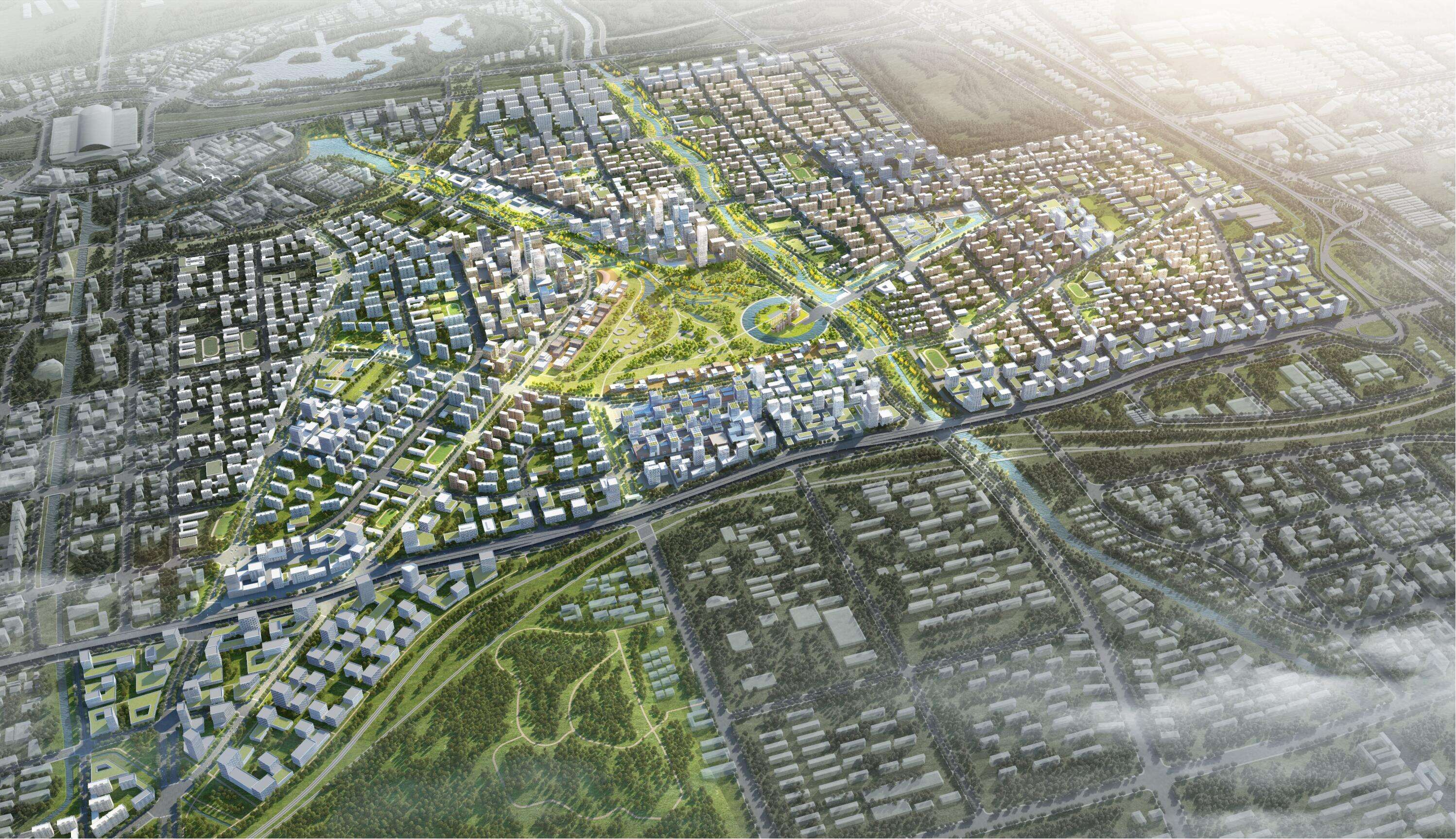 片區堅持生態優先、綠色發展的理念,先行啟動中央森林公園、森林公園地下商業、韓倉河生態景觀帶綜合整治等項目的建設。其中森林公園占地面積約 680 畝,綠地率高達 86%,為濟南“東強”區域的綠肺;韓倉河生態景觀綜合整治項目融合生態防護、休閑游賞功能于一體,形成東部新城獨特的生態景觀。片區還將對濟鋼大門、3200 高爐等進行保留改造,形成新舊建筑形態的碰撞與融合,引領城市的更新和多元化發展。